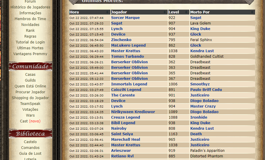 Posted October 21, 20223 yr Boa tarde! O povo falando que muitos makers fora de guild estão atrapalhando pelego, nandin trzymaj, Faze, Ichiigor. Acredito que a melhor solução seja tirar alguns de vocês, exemplo nonlly, últimos 2 pelegos 12x, totalizando 24 mortes.
